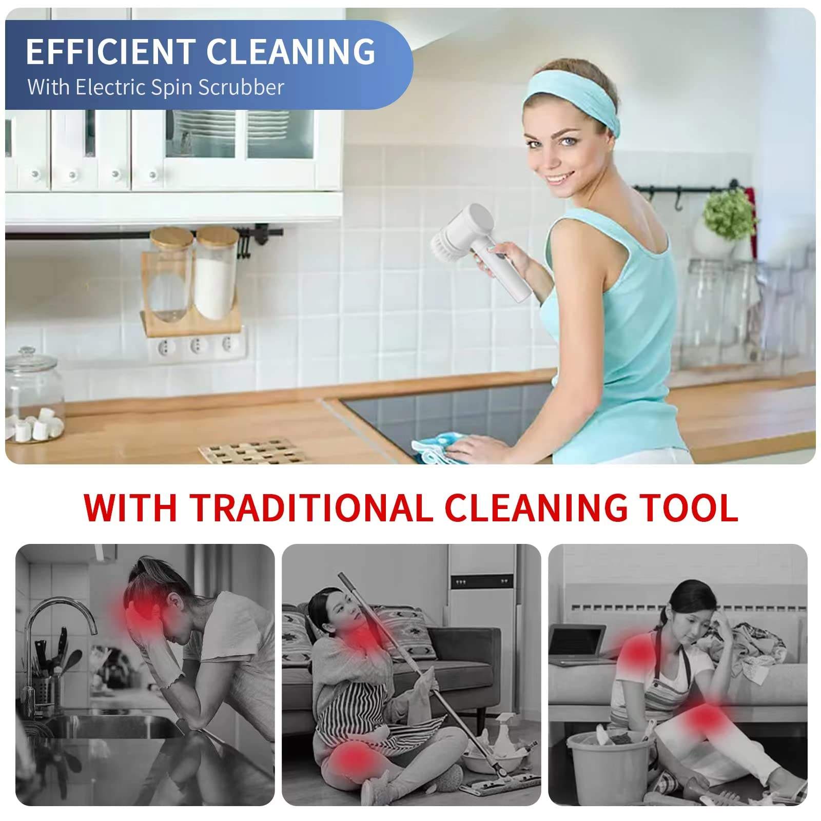 • Cordless Electric Scrubber – তার ছাড়াই ব্যবহারযোগ্য