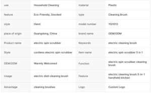 এতে রয়েছে ৩টি ভিন্ন ব্রাশ হেড, যা বাথটাব, বাথরুম টাইলস, কিচেন সিঙ্ক, চুলা ও অন্যান্য কঠিন দাগ পরিষ্কারে কার্যকর। হ্যান্ডহেল্ড ডিজাইন হওয়ায় এটি ধরতে আরামদায়ক এবং দীর্ঘ সময় ব্যবহারেও হাত ব্যথা করে না।