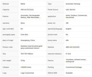 এই Automatic Sensor Soap Dispenser স্পর্শ ছাড়াই হ্যান্ড ওয়াশের সুবিধা দেয়, যা সম্পূর্ণ হাইজেনিক ও নিরাপদ। ব্রাশড স্টেইনলেস স্টিল বডি এটিকে করে তোলে টেকসই ও এলিগ্যান্ট। USB চার্জিং সুবিধার কারণে সহজেই রিচার্জ করা যায়। রান্নাঘর, বাথরুম বা অফিস ব্যবহারের জন্য পারফেক্ট। আধুনিক জীবনযাপনের জন্য একটি স্মার্ট ও দরকারি গ্যাজেট।