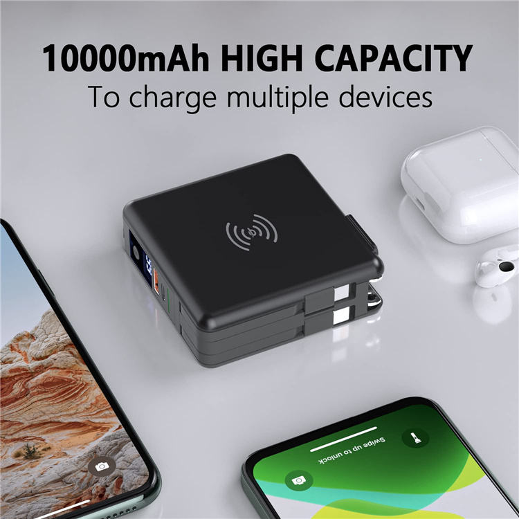 Super Power Bank Charger with Cables 4 in 1 10000 Mah Portable Wireless Chargers Power Banks