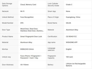 এই Wishome WiFi App 3D Face Recognition Smart Door Lock আধুনিক হোম ও অফিস সিকিউরিটির জন্য একটি প্রিমিয়াম ও অল-ইন-ওয়ান সমাধান। এতে রয়েছে উন্নত 3D Face Recognition Technology, যা দ্রুত ও নির্ভুলভাবে মুখ শনাক্ত করে দরজা আনলক করে।